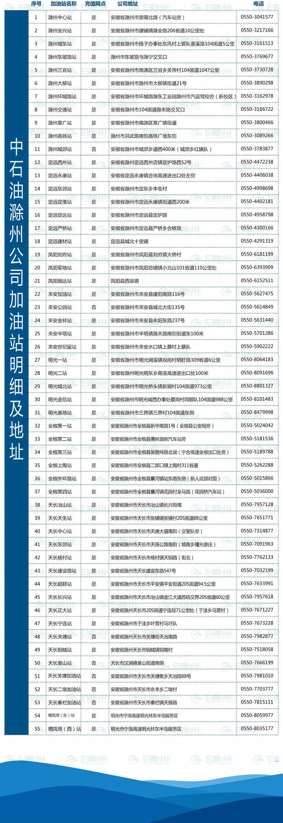 ???中石油滁州公司新增站點:名稱:來安二站;不是充值網(wǎng)點;地址:來安縣西外環(huán)路西側(cè);電話:0550-5616066???