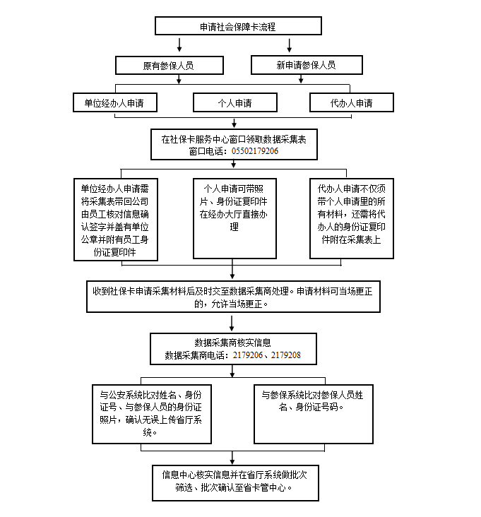 1、申請人帶齊辦卡材料后,直接前往市、縣社??ㄞk理窗口提交申請材料,窗口工作人員現(xiàn)場打印金融社??〝?shù)據(jù)采集表。 2、申請人在金融社??〝?shù)據(jù)采集表中核對個人信息,并由申請人本人或代辦人簽字確認(rèn)。窗口經(jīng)辦人員根據(jù)確認(rèn)后的金融社??〝?shù)據(jù)采集表在系統(tǒng)中完成【確認(rèn)】操作后,現(xiàn)場打印申辦金融社保卡回執(zhí)單(客戶存根)交由申請人或代辦人。